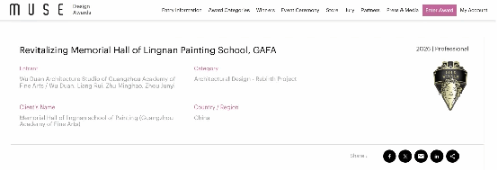 广州美术学院校史馆项目与岭南画派纪念馆改造项目,在2026年缪斯设计奖(MUSE Design Awards)评选中,双双荣获建筑设计类别金奖。